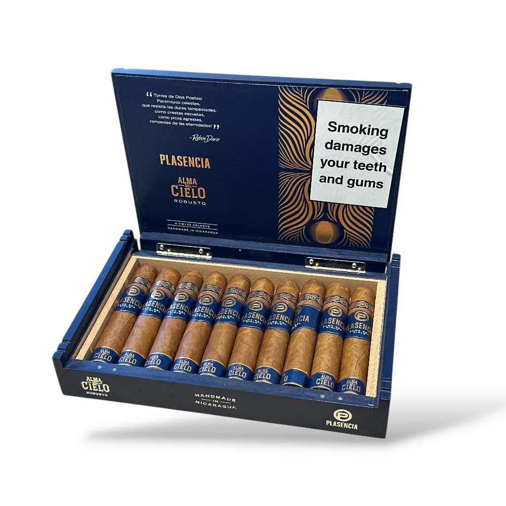 Take your cigar journey to new heights. Light up the Plasencia Alma del Cielo Celeste Robusto and explore bold flavours shaped by mountain-grown tobaccos.